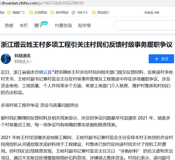 近日,浙江省丽水市缙云县舒洪镇姓王村多位村民向相关部门提交反馈材料,反映该村李姓村支书、王姓村副书记兼村监会主任在村级事务管理及工程推进中存在多项履职争议,涉及资金使用、工程质量、个人作风等多个方面,希望上级部门介入核查,维护村集体和村民们的合法权益。